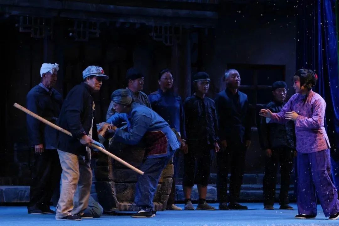 在確定排演的時(shí)候,全體演職人員自覺反復(fù)觀看視頻資料,熟背臺(tái)詞。因?yàn)槭欠?,馱營村民樂團(tuán)團(tuán)長邢建寬特意邀請(qǐng)了原版的女主角何旭紅擔(dān)任導(dǎo)演為演員們排戲。