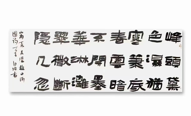 近年來,王自強的創(chuàng)作逐漸從具象走向意象。他嘗試將工筆畫的細膩與隸書的厚重結合,在《荷塘清韻》等作品中,荷葉的墨色層次與書法的線條韻律相互映襯,形成“書畫同源”的藝術境界,這種對書法藝術的探索精神不僅得到業(yè)界認可,而且得到了社會的廣泛認同。