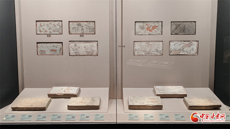 在博物館的“古冢丹青——高臺魏晉十六國時期墓葬壁畫藝術(shù)陳列”展廳里,記者看到,《二牛耕地畫像磚》生動再現(xiàn)了當(dāng)時的農(nóng)耕技術(shù):兩頭耕牛架著直轅犁,后隨的男子一手扶犁一手揚(yáng)鞭,展現(xiàn)了典型的“二牛抬杠”耕作方式?!赌谅箞D壁畫磚》則描繪了古人放牧鹿群的獨特場景,為研究當(dāng)時的畜牧業(yè)發(fā)展提供了珍貴資料。