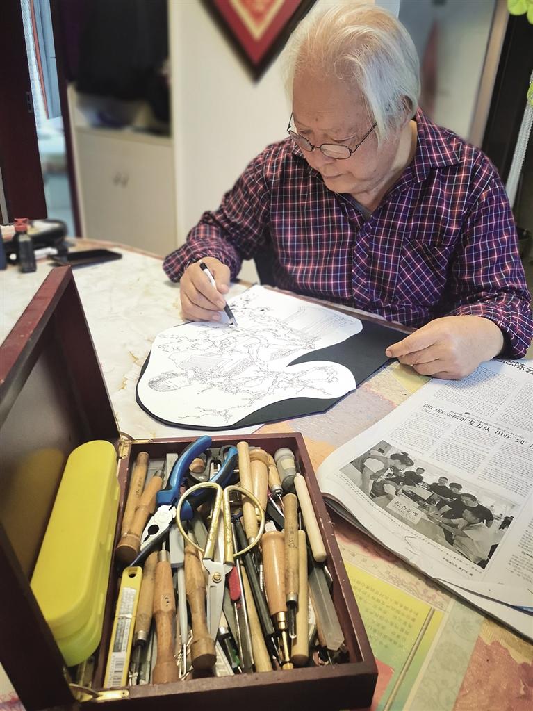 談到創(chuàng)作過程,他眼神中閃爍著匠人的嚴謹光芒:“剪一個好作品,首先要有一個構思,然后再把它畫出來,再去動剪刀、刻刀各種工具。” 在他這里,剪紙絕非簡單的“剪花樣”,而是嚴謹?shù)乃囆g創(chuàng)作,是“胸有成竹”后的“運剪如風”。