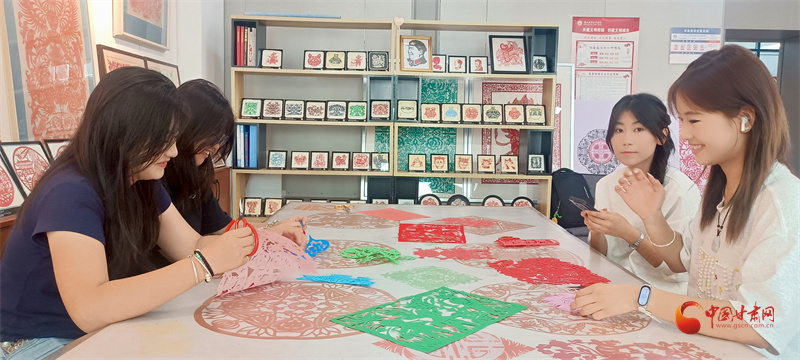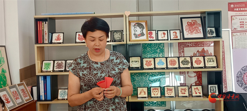 蘭州職業(yè)技術(shù)學(xué)院非物質(zhì)文化遺產(chǎn)學(xué)院剪紙工作室,史婷老師正在教同學(xué)們剪紙。“咔嚓、咔嚓……”的剪紙聲如美妙的音符,那樣熟悉,又那樣動聽。